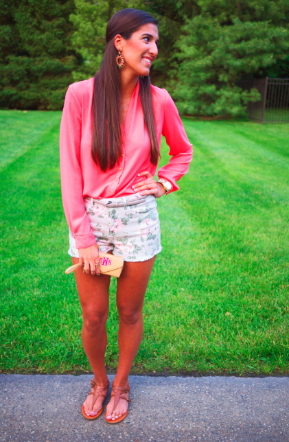 | Shoes: Gianni Bini via Dillard’s; Shorts: Urban Outfitters (old); Belt: Ann Taylor (similar); Top: Forever 21 (similar); Watch: Michael Kors; Earrings: via Collections (a local boutique); Clutch: c/o Two Funny Girls |