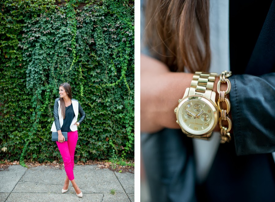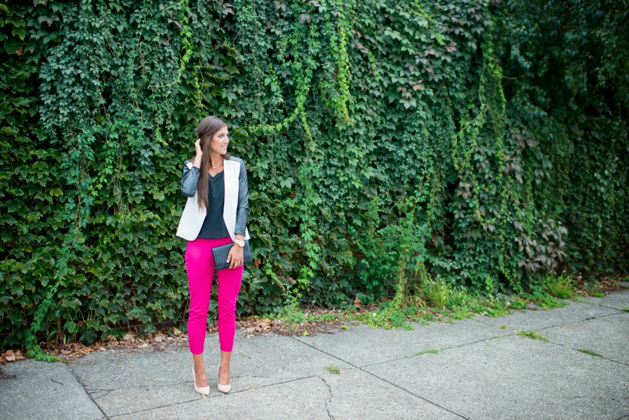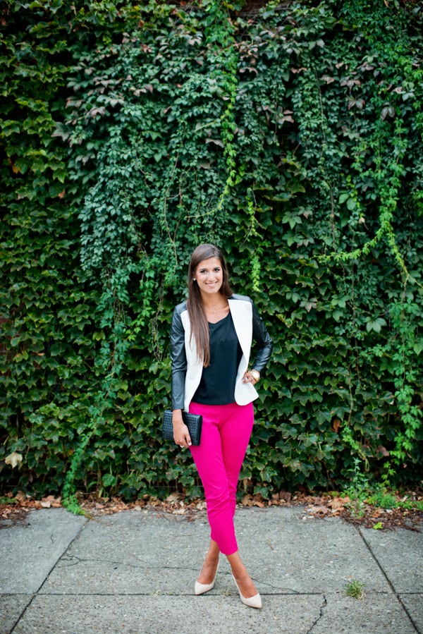 beautiful outfit! i love the jacket…it's perfectly paired with those hot pink pants!