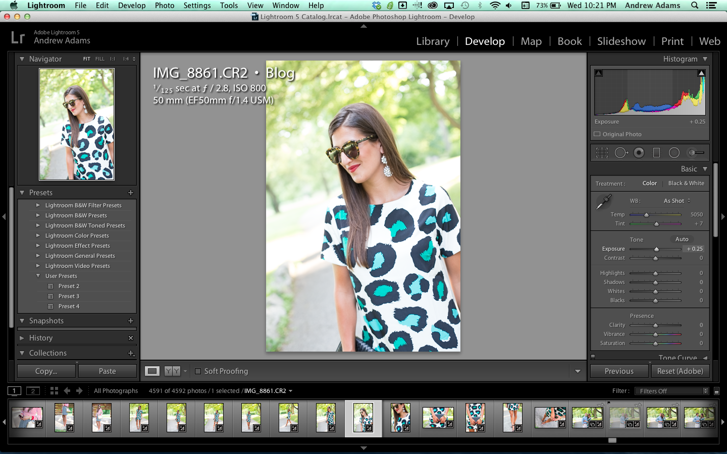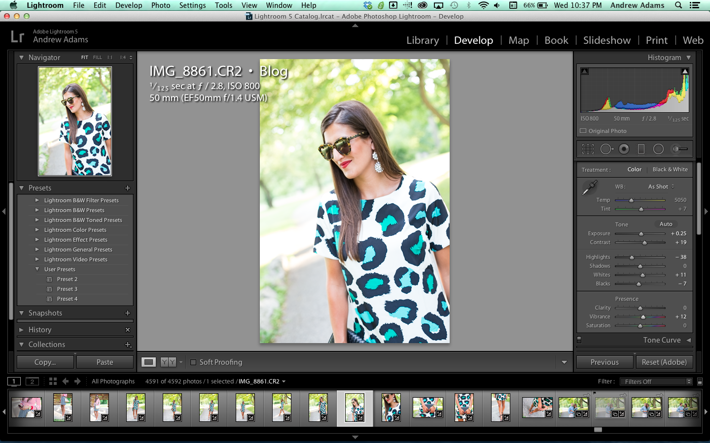 This week I thought I’d show you the workflow that I go through to edit outfit photos. There’s several basic adjustments that need to be made to a photo shot in RAW before you export them to be seen on your blog. I personally use Adobe Lightroom, but the terminology/settings {such as exposure, saturation, highlights/shadows} should be universal among applications so if you have Photoshop Elements, Camera RAW, or any other application, you should be able to make these exact same adjustments in these programs as well.