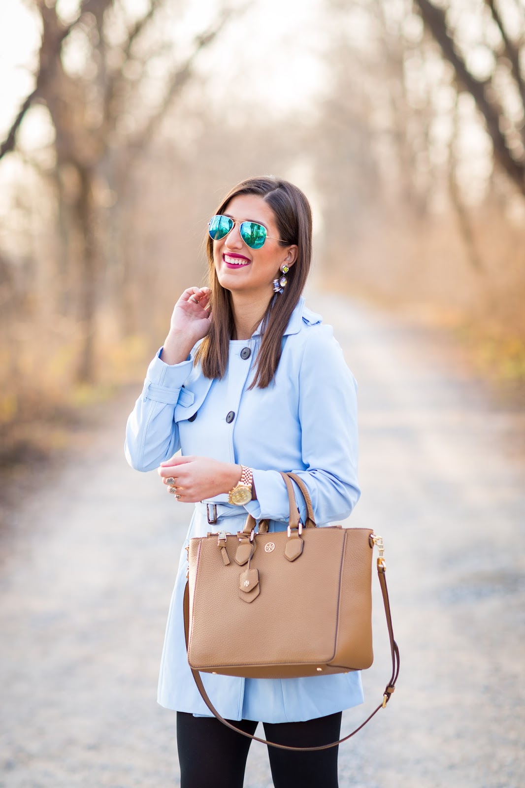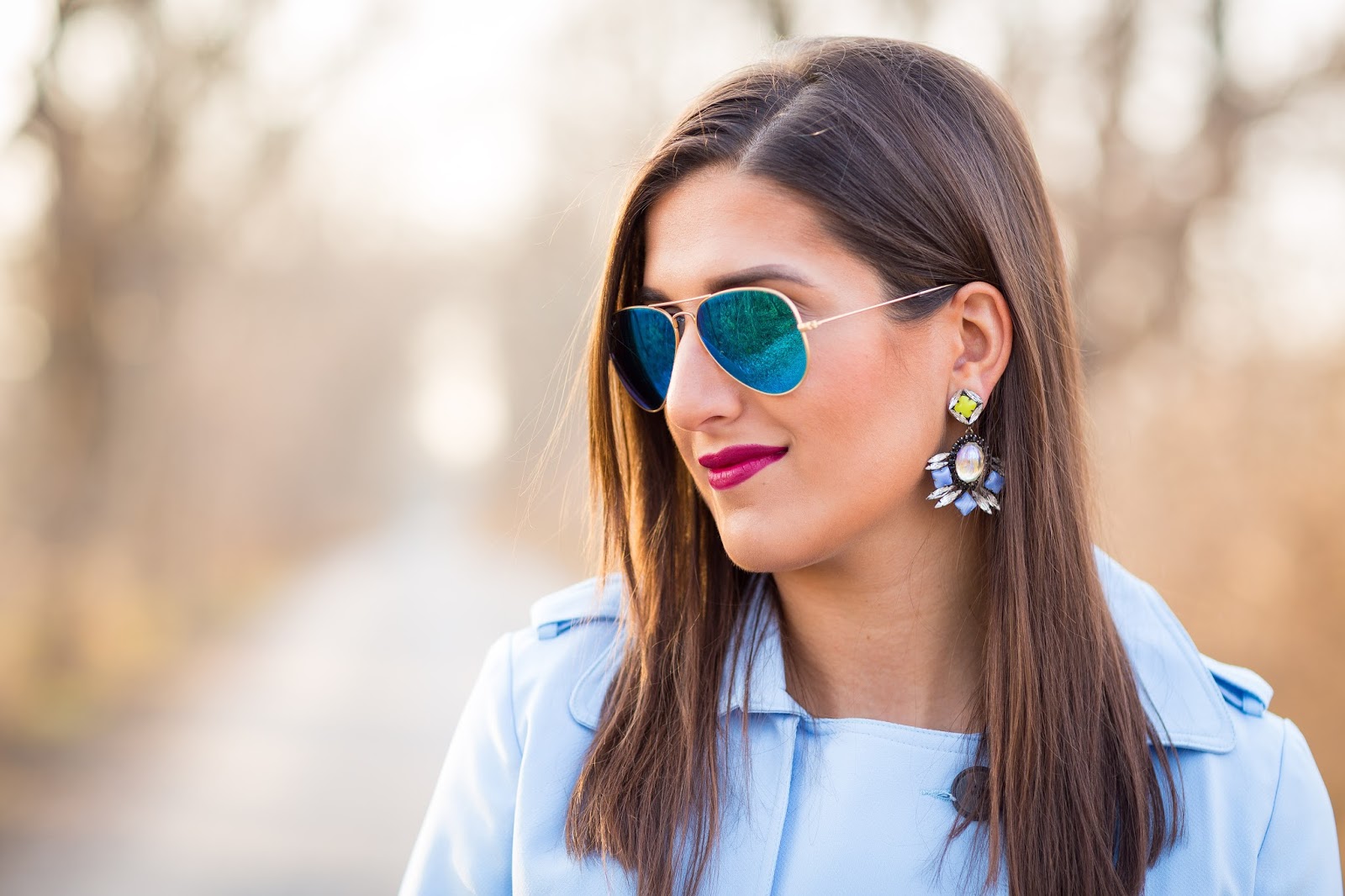 I love the earrings you paired with this amazing trench! The way the earrings tie in a different shade of blue is amazing!