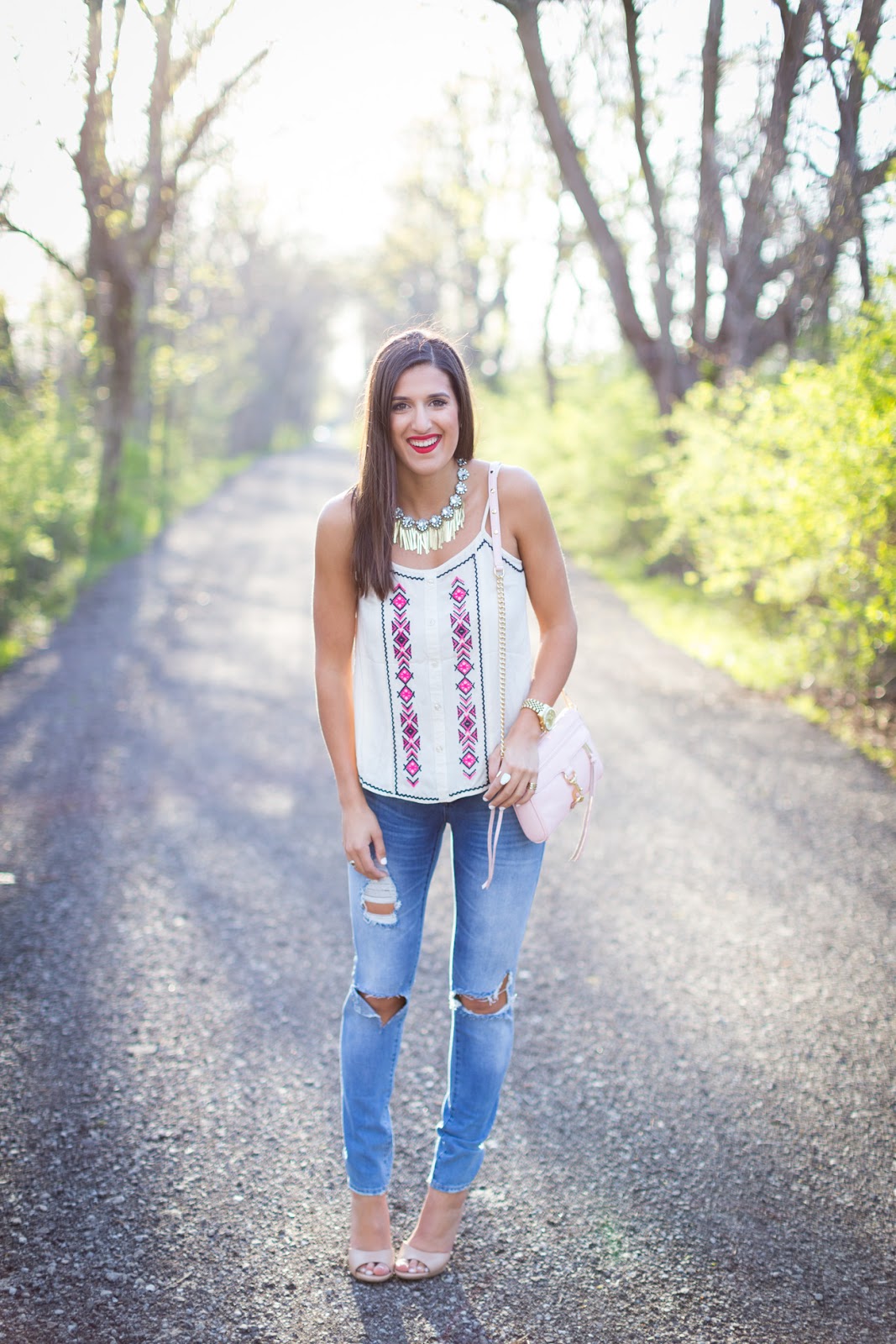 I’m so sad that this embroidered tank sold out so quickly! I love the pink and navy detailing on it. Instead, I found two similar and affordable embroidered tanks that may be just as good! Here is a layered embroidered v-neck tank and here is another embroidered tank. I’m a sucker for anything with embroidered details. I also am in love with these ripped jeans, which I’m sure you have been noticing from my Instagram. They’re not too ‘destroyed‘ and have a pale wash, which allows them to go well with a lot of tops!