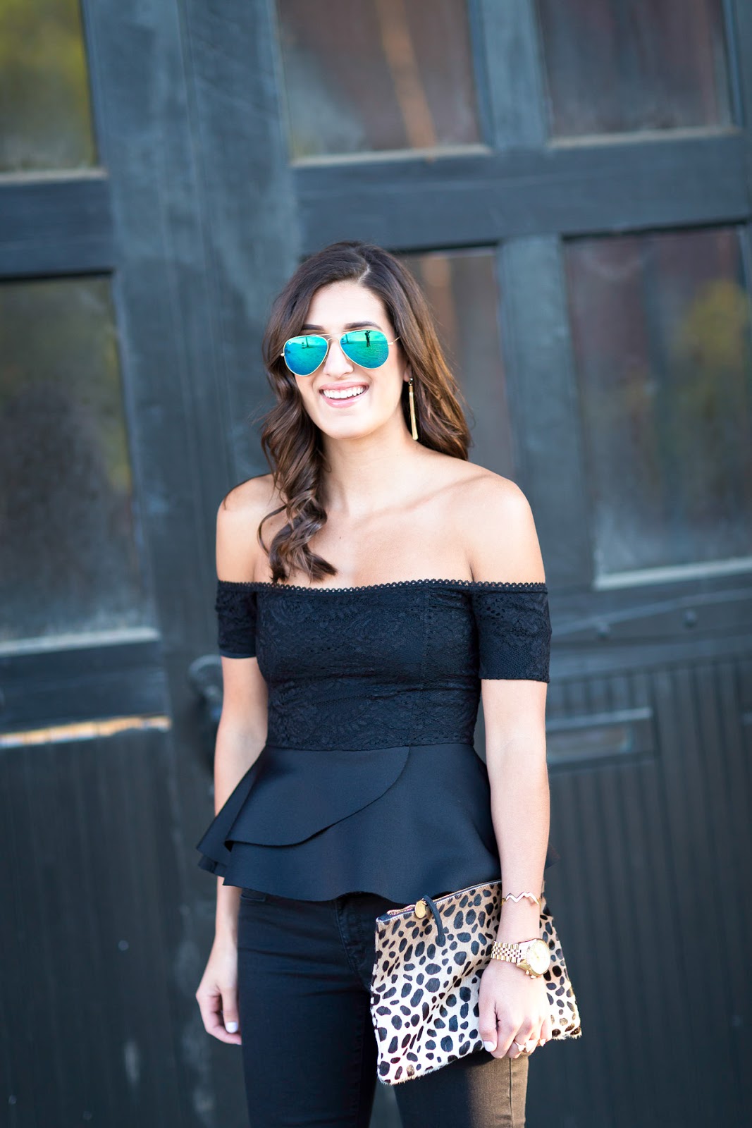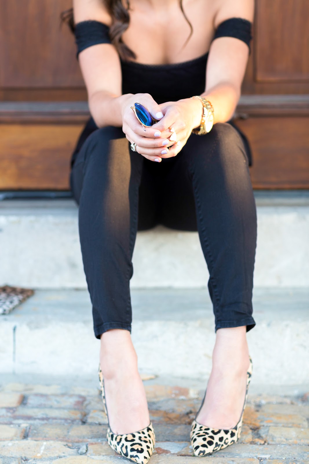 I decided to go with leopard accents for this outfit. I’m always a sucker for an all black outfit with pops of leopard. This clutch makes it easy to do so! Also, these are the most comfortable heels I have ever worn and they’re the perfect leopard print! I definitely recommend them–they come in many other colors, including solid ones.